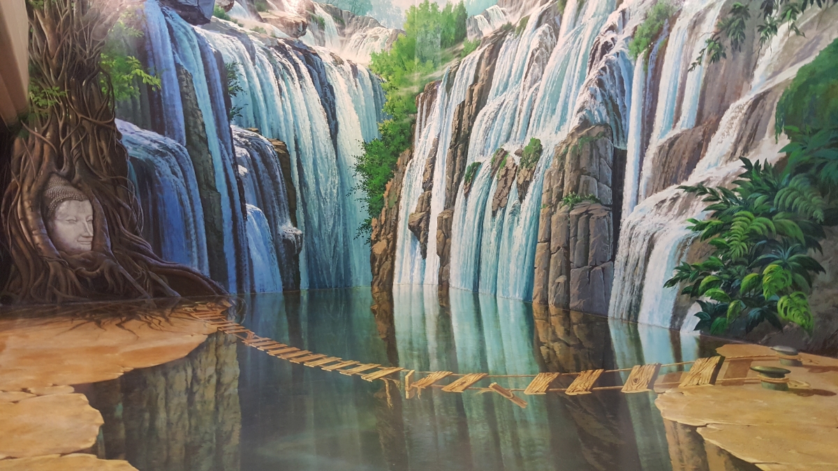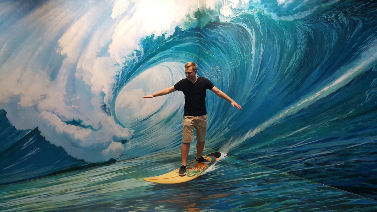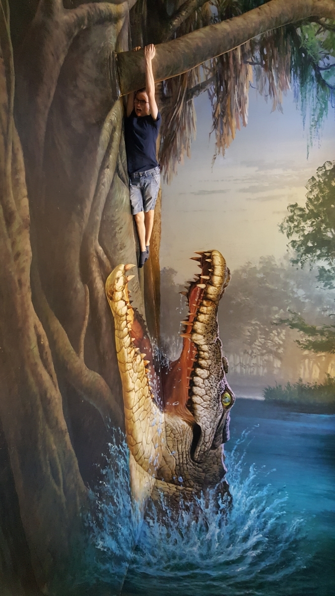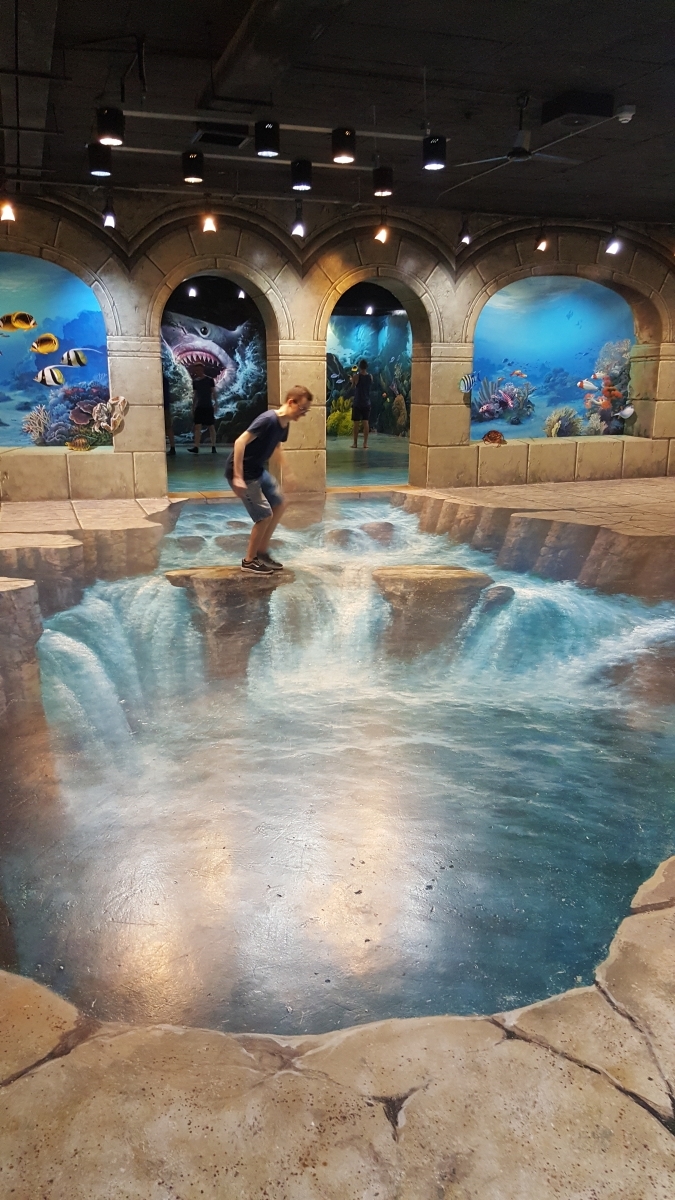 Ondertussen was het middag, en zijn we in een guest house in de geburen iets gaan eten. Omdat de temperaturen hier in de namiddag 40°C benaderen, hebben we vervolgens de airconditioning opgezocht. Deze hebben we gevonden in het 3D museum. Zoals de naam het zegt, een museum waar de vloeren en muren op zo’n manier geschilderd zijn dat je een leuk effect krijgt indien je op de correcte plaats een foto neemt. Hier volgen onze beste kiekjes: