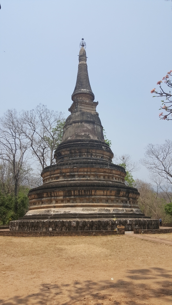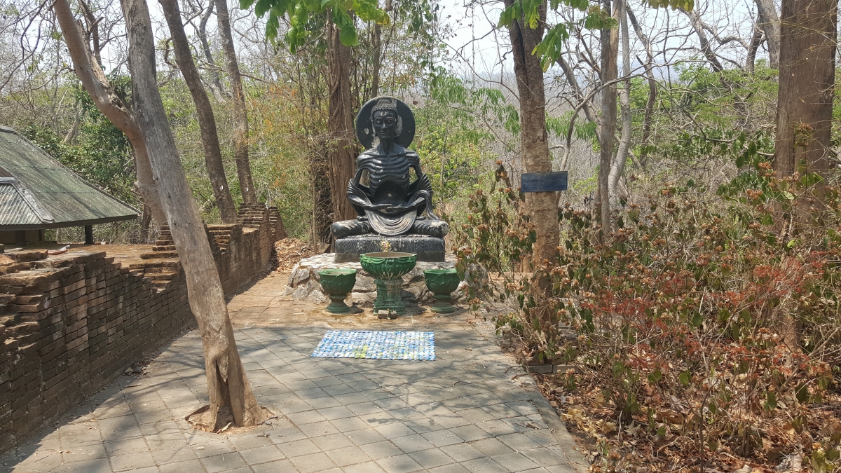 Deze ochtend hebben we ingezet met een stevig ontbijt. Toen we in de ontbijtzaal aankwamen, waren we helemaal alleen en hadden het hele buffet voor ons. Na 2 glazen vruchtensap, een bord met spek en eieren en wat rijst kon dag 2 beginnen. Op de planning stond om vandaag enkele tempels te bezoeken en dus zijn we eerst op pad gegaan om een lange, lichte broek te zoeken. Hiervoor hebben we opnieuw simpelweg een taxi naar een winkelcentrum in de buurt genomen. Wanneer gevonden, konden we vertrekken naar onze eerste stop: “Wat Umong”.